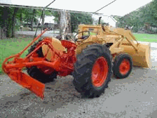 All of this sucking-up drew no response from him and he finally rubbed his chin with his body filler dust covered hand and said "yeah, I think we can work it in". Big mistake, I didn't get a price quote since he said "If you're in no big hurry I'll work on it in my spare time and save you some money". While waiting for him to do the sheet metal parts I began redoing the front loader. I made another trip to the building supply yard for more blasting sand and to Harbor Freight for more wire brushes. The front loader didn't require a whole lot of labor and all went well with not a great outpouring of capitol until I took all the hydraulic hoses in for new replacements.